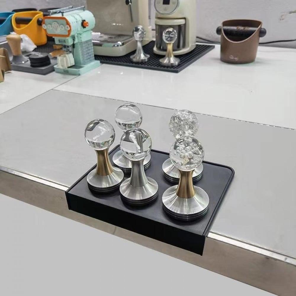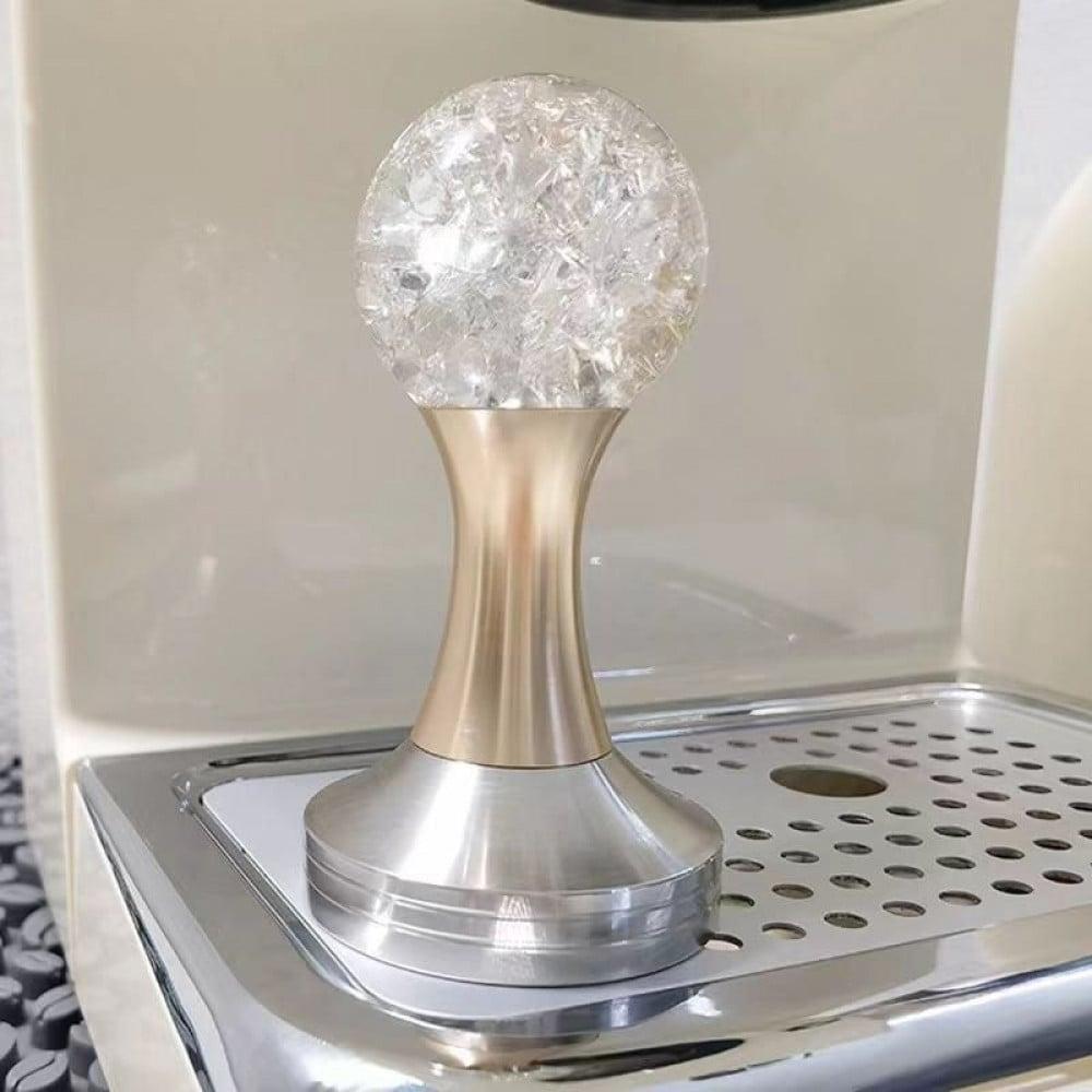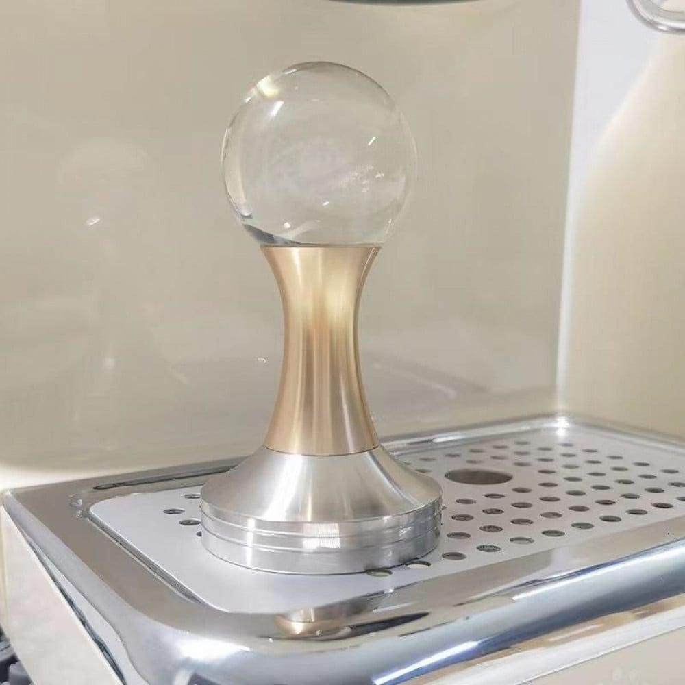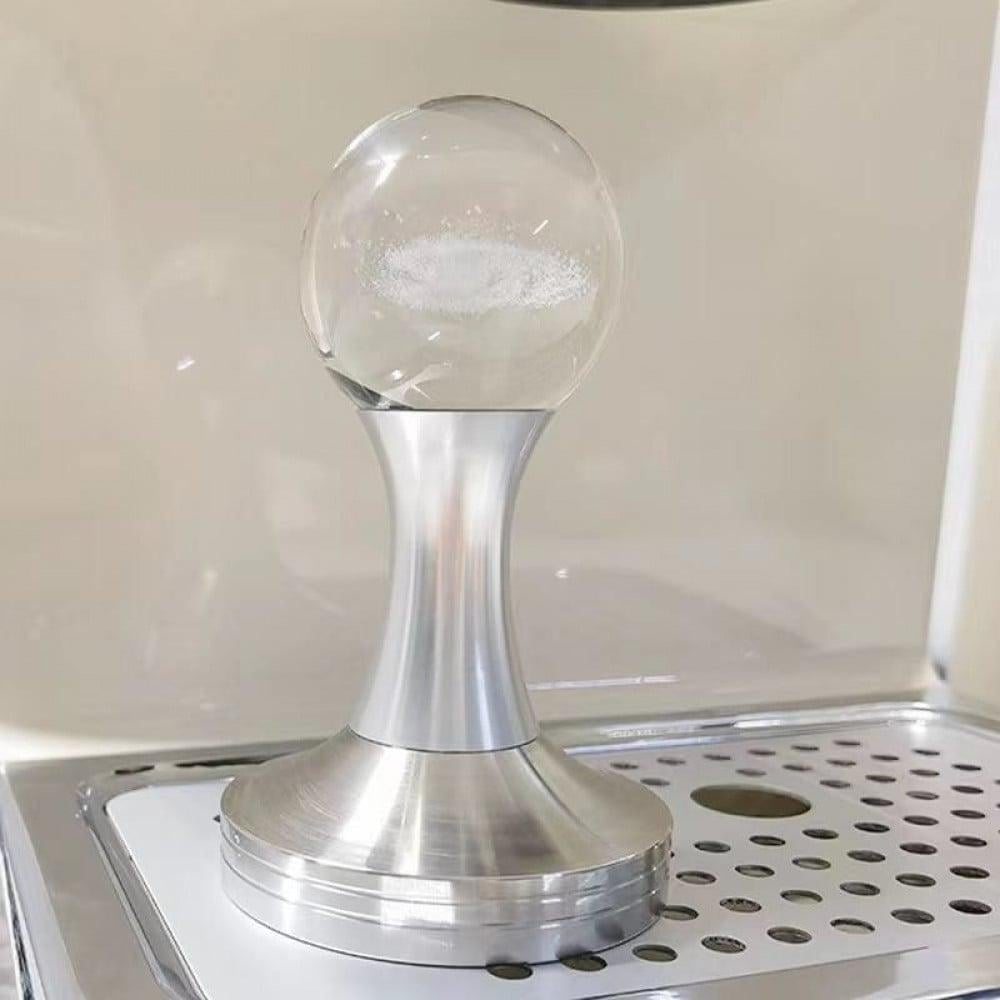 تامبر مصنوع من الستانل ستيل لكبس القهوة أثناء تحضير الإسبريسو , يتميز بقاعدة مسطحة من الإستالنس ستيل مقاومة للصدأ , تسمح بتوزيع الضغط بشكل متساوي مع مقبض شفاف بعدة مقاسات ( 51mm,53mm,58mm )