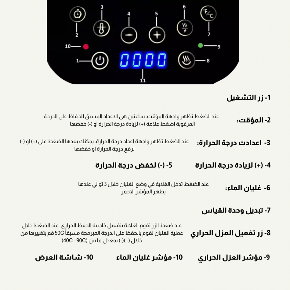 تنويه : الغلاية تحتوي على قطع داخلية مصنّعة في بريطانيا بجودة عالية، بينما تم التجميع النهائي والتصنيع في الصين وفقاً لأعلى معايير الجودة العالمية.