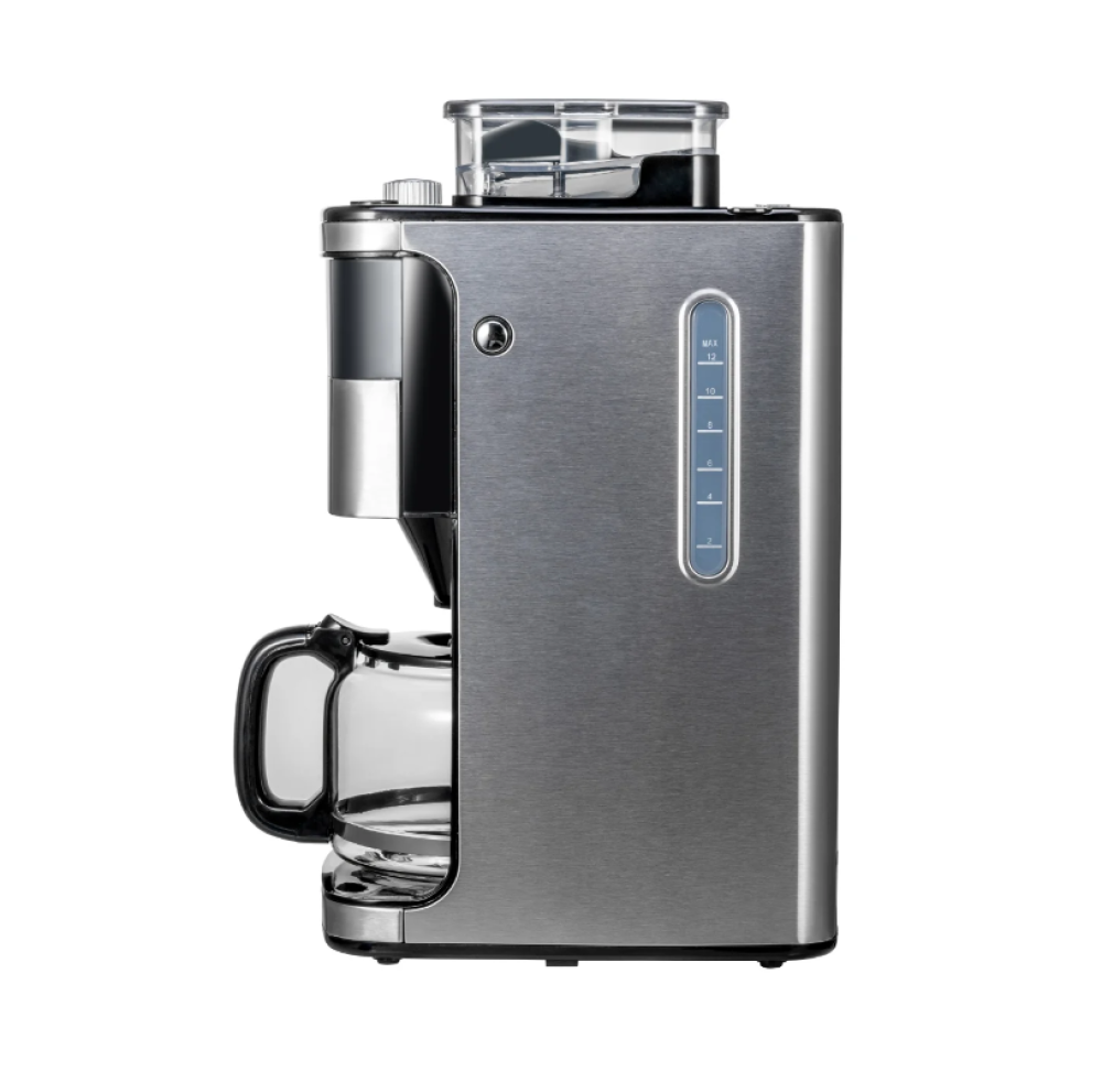 صانعة القهوة بالتقطير من ميركا. تأتي صانعة القهوة بهيكل مصنوع من الستانلس ستيل وشاشة عرض رقمي بالإضافة إلى مطحنة مدمجة في الأعلى لطحن حبوب البُن والتحكم في درجة الطحنة المناسبة لك، و تتيح لك أيضا تحضير 12 كوب من القهوة في المرة الواحدة.